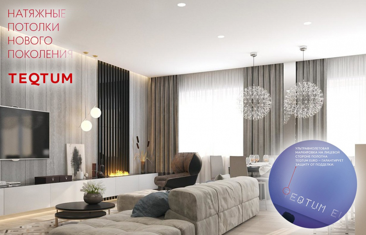 В настоящее время для потолка гостиной представлен широкий ассортимент натяжных материалов и технологических решений.